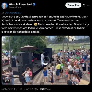 De samenleving is „compleet vergiftigd”, twittert Telegraaf-journalist Wierd Duk. [...] Aanleiding voor zijn tweet is een talkshowfragment. Daarin beschrijft een vertegenwoordiger uit de Joodse gemeenschap hoe een hotelreceptioniste kamernummers van Israëliërs doorgaf, met mishandelingen tot gevolg.